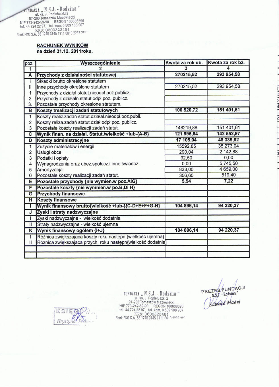 Rachunek wyników 2011 r.